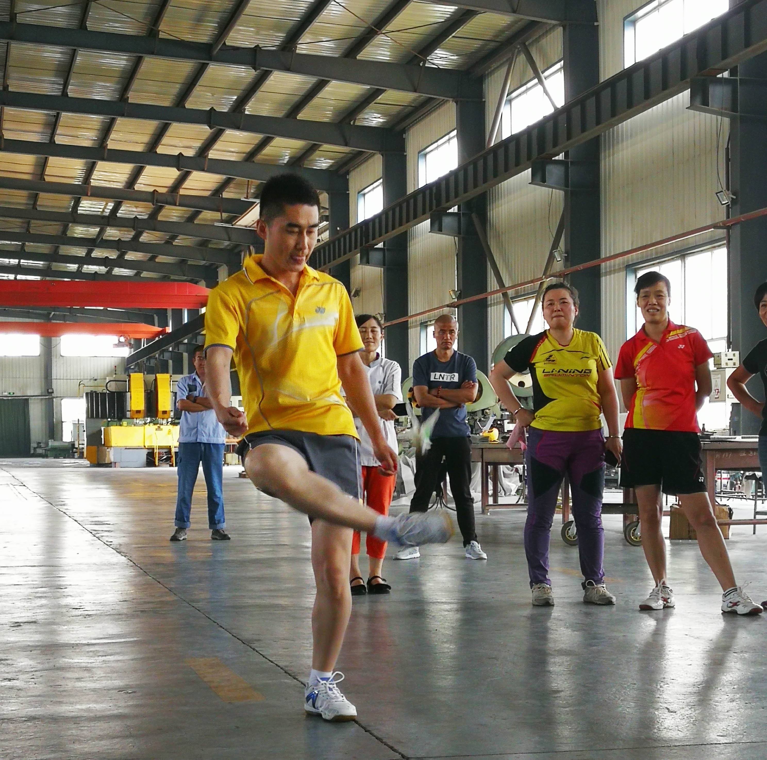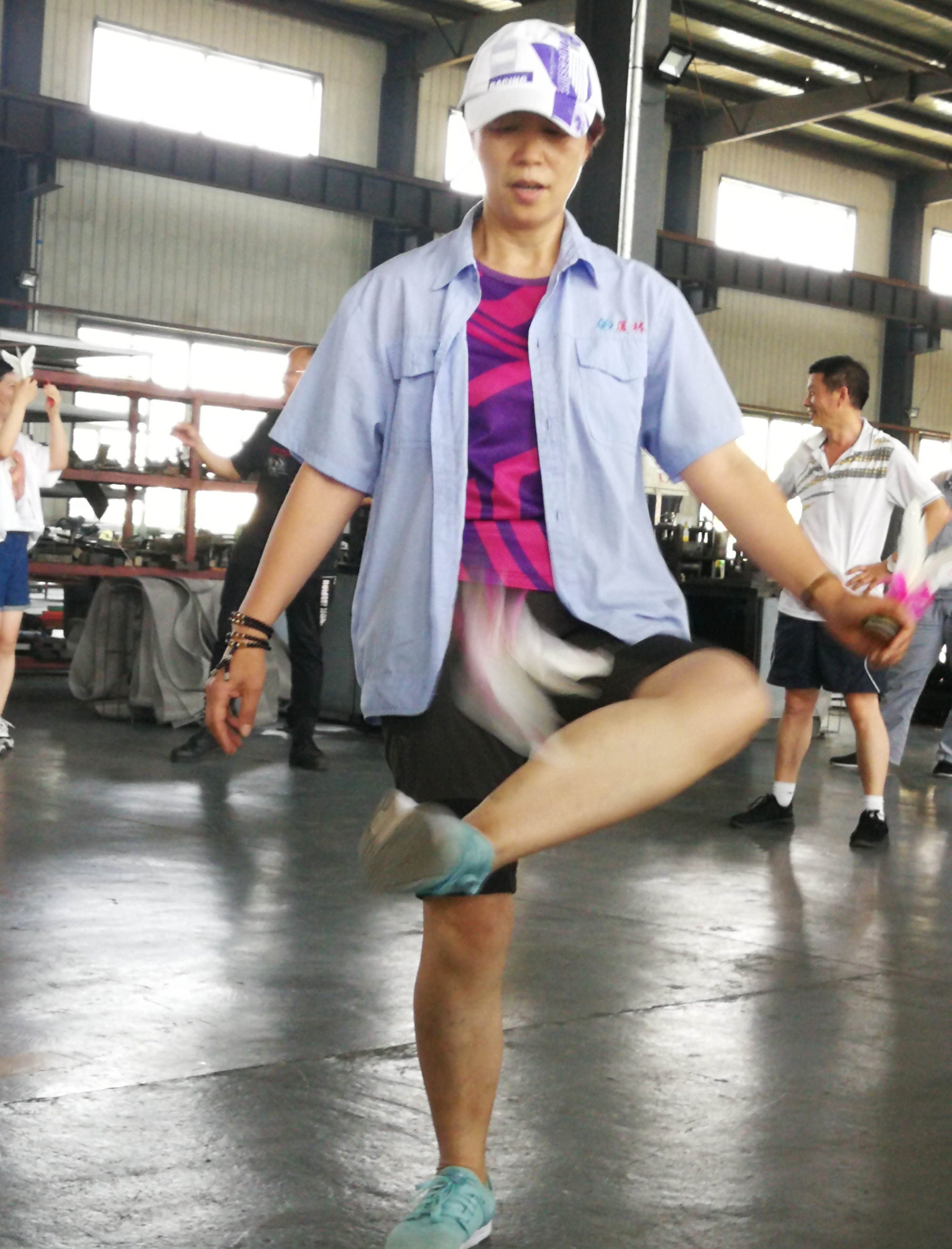 进行的项目有单人项目和集体项目,单人项目又分单脚踢毽和双脚踢毽等,比赛选手各个信心十足,只见五彩的毽子上下飞舞,就像快乐的小燕子。观战的工友们不约而同的齐声加油!健儿们有的身轻如燕,有的沉着稳健,有的为了接住毽子不惜摔倒。随着各项比赛的纪录不断被刷新,比赛也进入了尾声,最终选手们都获得了满意的成绩。踢毽子比赛不仅可以激励员工的运动热情,增强员工们的体质,而且拉近了员工之间的情感使大家更加团结,心往一处想,劲往一处使。比赛在一片欢声笑语中落下了帷幕。